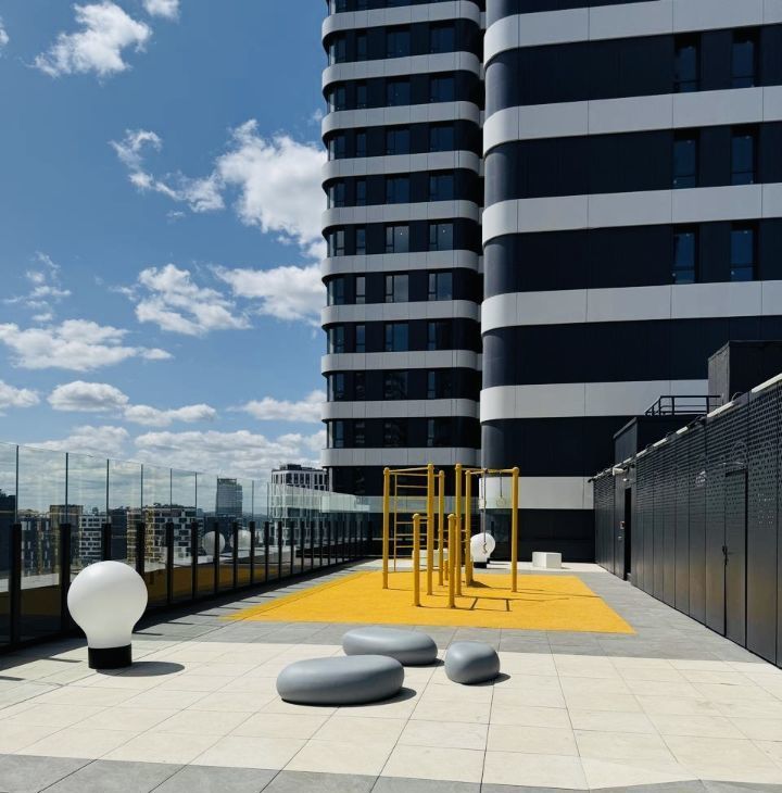Двор без машин, закрытая и охраняемая территория, круглосуточное наблюдение, установлены датчики дыма - комфорт и безопасность. В лобби, для удобства жителей, есть бесплатная зона коворкинга, тренажерный зал, зона отдыха с диванами, санузел, лапомойка, колясочная и кардио-кинотеатр с проектором и тренажерами. Удобный выход на благоустроенную крышу с тренажерами и зоной йоги.