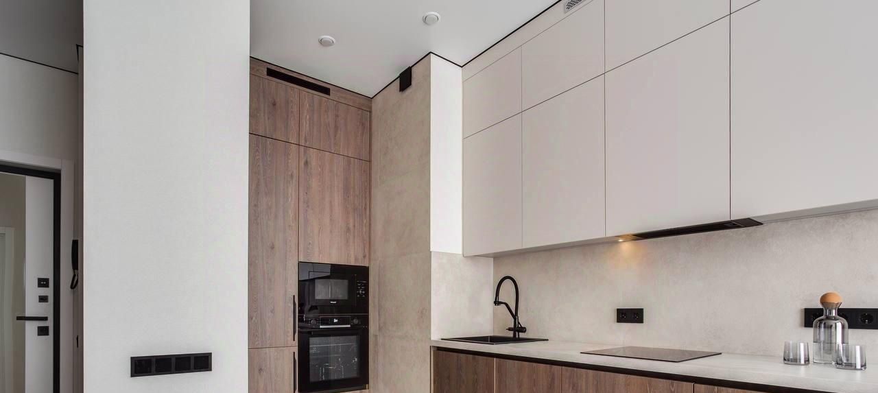 Индукционная варочная панель, вытяжка, стиральная машина, встроенный духовой шкаф, микроволновая печь, посудомоечная машина, встроенный холодильник NO Frost.
