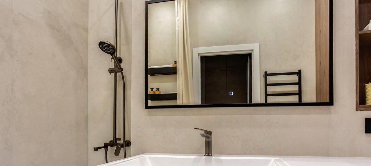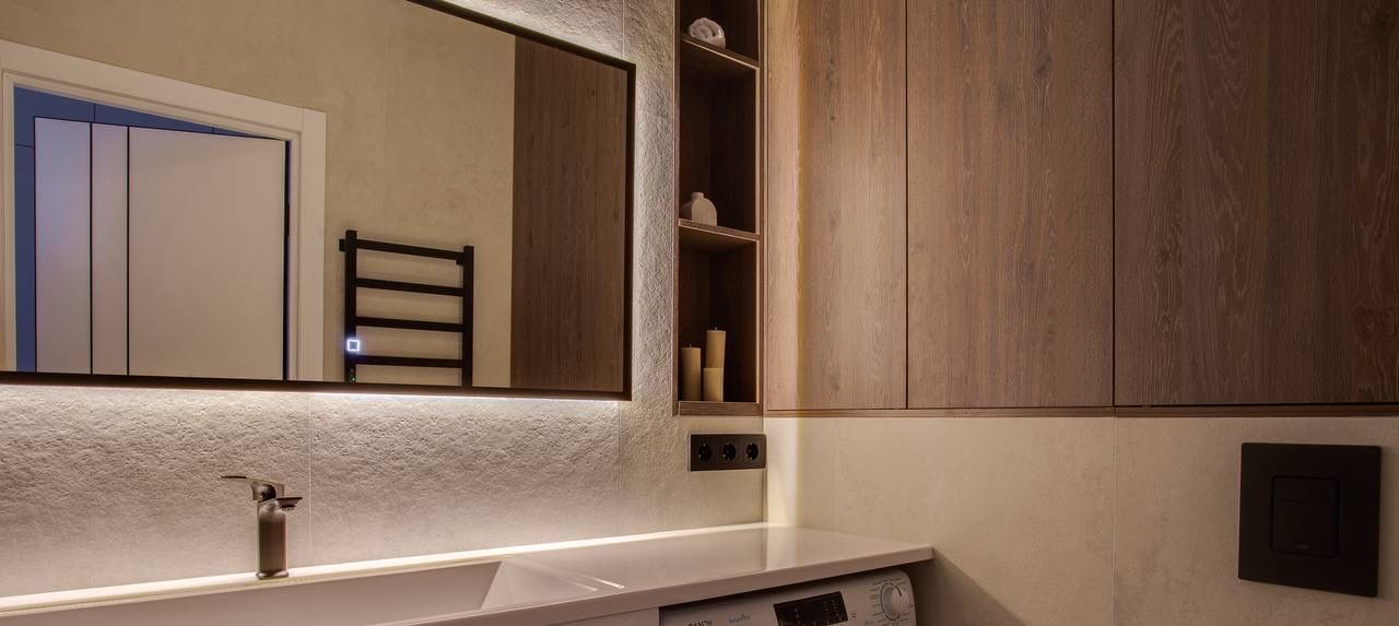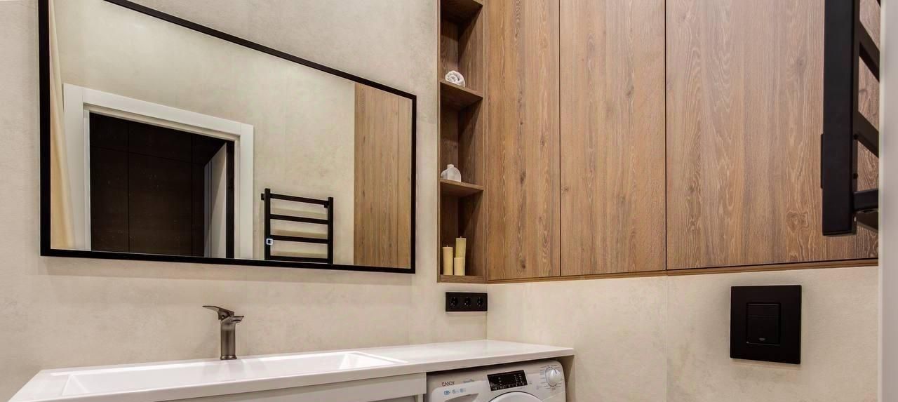 В санузле и ванной комнате грамотно и профессионально выполнен монтаж коллекторного шкафа системы водоснабжения с дополнительной установкой системы от протечки воды а также накопительный бойлер для нагрева воды в период планового отключения.