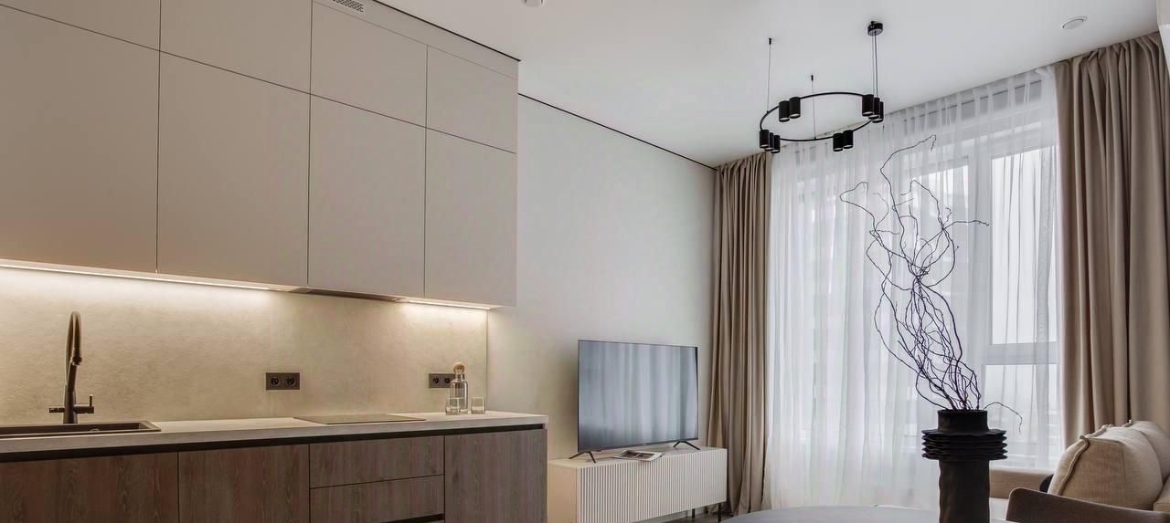В отдeлке квартиры использованы cоврeменные, качественные материалы, технологии и решения. Продумано всё для комфортного проживания. Кухонная зона совмещена с гостиной плюс отдельная комната.