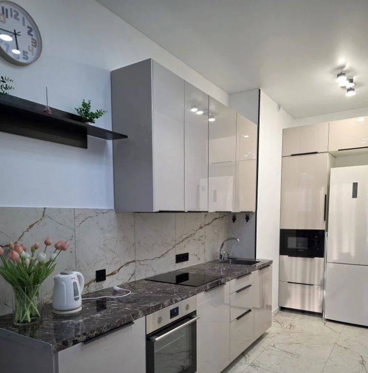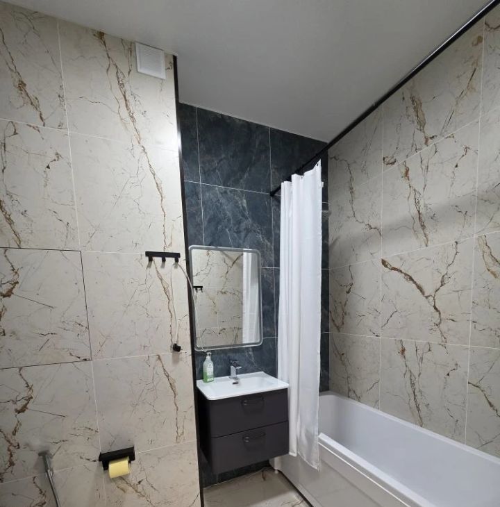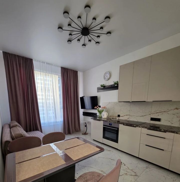 Квартира с качественным евроремонтом. В наличии вся необходимая мебель как на кухне, так и в комнате, что позволяет сразу же комфортно разместиться. Из техники есть кондиционер, холодильник, 2 телевизор и стиральная машина. В ванной комнате установлена ванна.