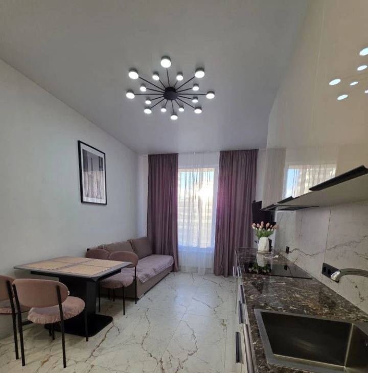 Сдается впервые. Общая площадь квартиры составляет 39 кв. м, из которых 12 кв. м — уютная спальня, а просторная кухня-гостиная занимает 20 кв. м. Квартира расположена на 5 этаже 25-этажного дома, окна выходят во двор.