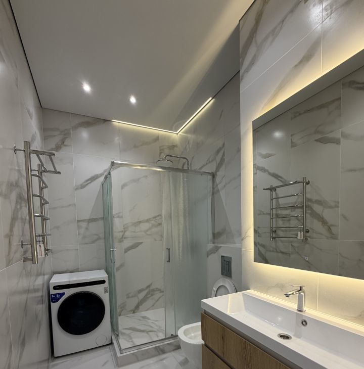 В квартире есть всё необходимое для комфортного проживания. Светлая гостиная и удобная планировка обеспечивают уют и комфорт. Совмещенный санузел оборудован современной душевой кабиной. На кухне и в комнате имеется вся необходимая мебель. Из техники в вашем распоряжении холодильник, вытяжка, духовая печь, индукционная плита, электрочайник, посудомоечная и стиральная машины.