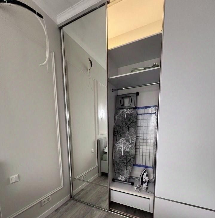 помимо шкафов есть кровать с под подъемным механизмом, где можно хранить чемоданы с несезонными вещами .