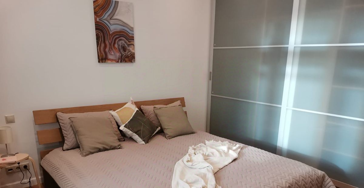 - В спальне кондиционер, кровать с ортопедическим матрасом, большой встроенный шкаф;