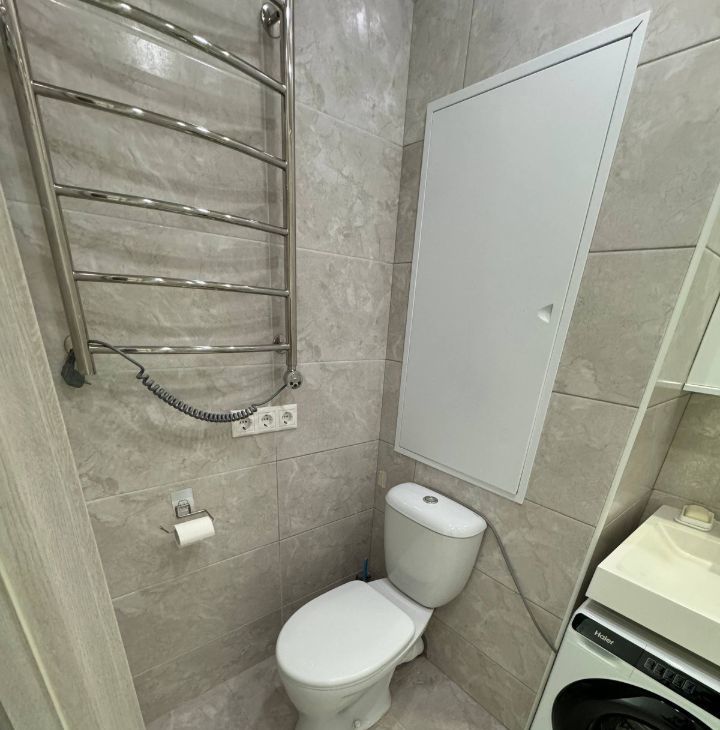 Квартира с евроремонтом, что заметно повышает комфорт проживания. Встроенная мебель на кухне и в комнате создает уютную атмосферу. В квартире есть вся необходимая техника: кондиционер, холодильник, посудомоечная и стиральная машины. Совмещенный санузел оборудован ванной. Также есть лоджия, где можно насладиться утренним кофе.