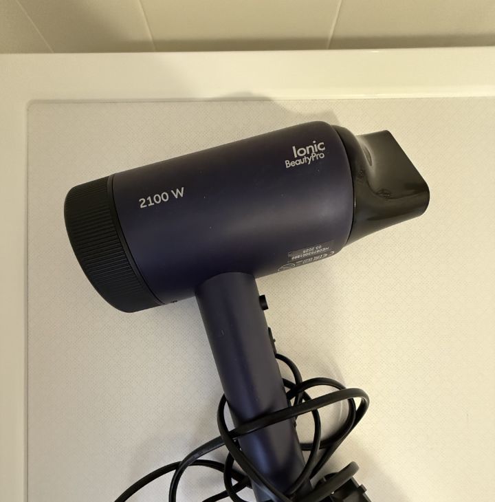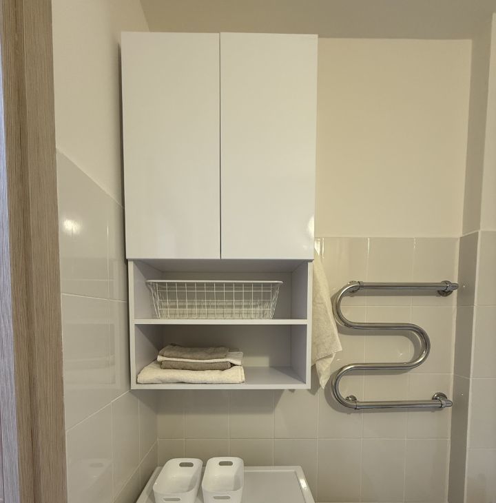 Ванная комната: стиральная машина, фен, необходимые аксессуары.