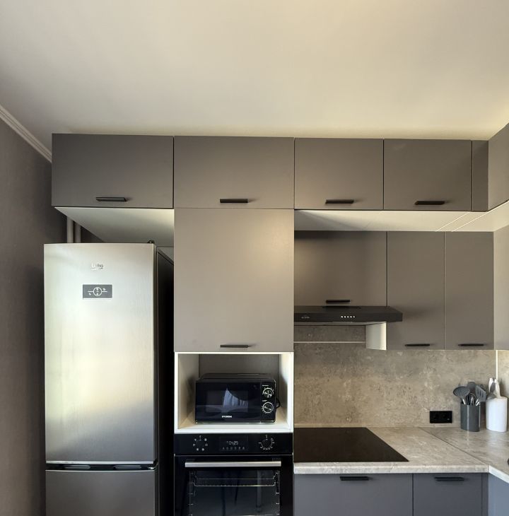 Есть всё необходимое: холодильник, духовка, варочная панель, вытяжка, посудомоечная машина,