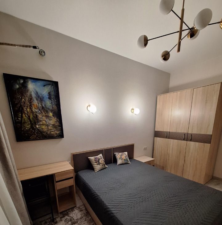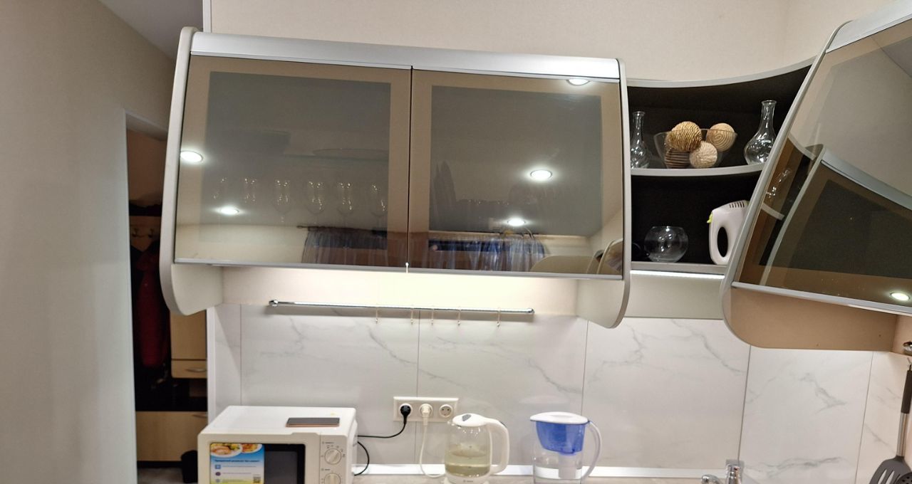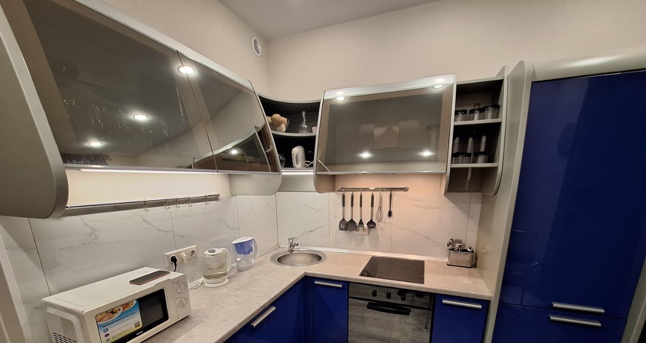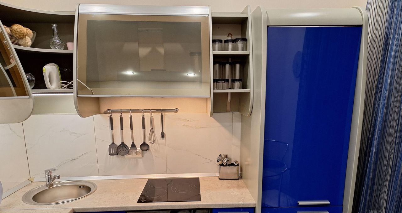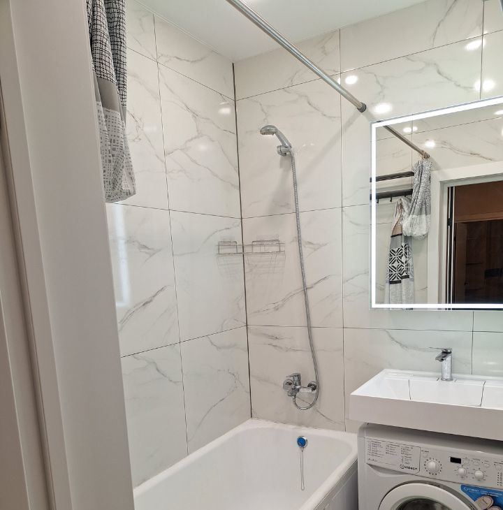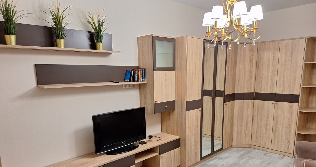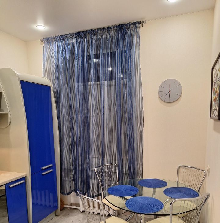 Квартира после евроремонта, меблирована и готова к проживанию. На кухне установлены необходимые предметы мебели и бытовая техника: холодильник, посудомоечная машина. В комнате также предусмотрена мебель для комфортного проживания. В ванной есть ванна, что создаёт условия для полноценного отдыха после рабочего дня.