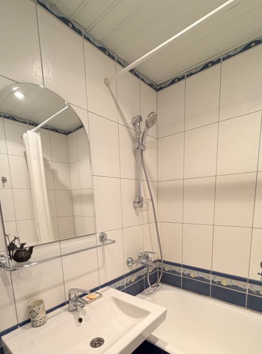 В квартире есть все необходимое для комфортного проживания: современная мебель на кухне и в комнатах, кондиционер, холодильник, телевизор и стиральная машина. Ванная комната оборудована ванной. Имеется балкон для приятных вечеров на свежем воздухе.