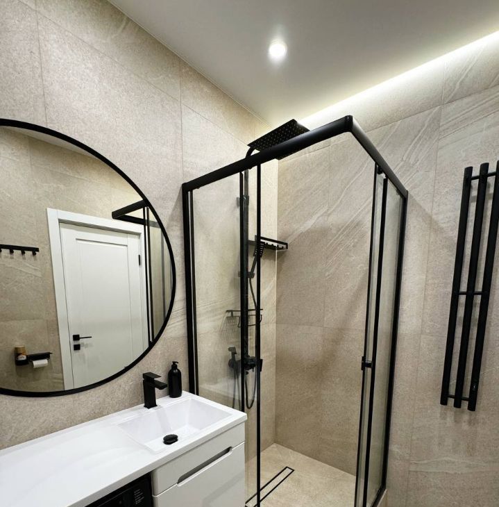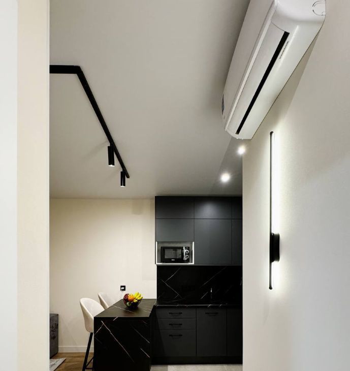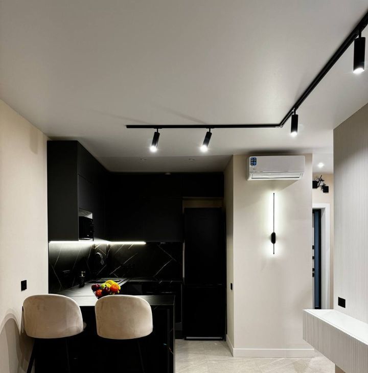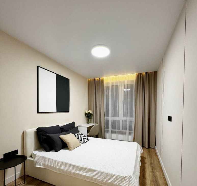 Квартира с дизайнерским ремонтом, полностью укомплектована техникой (стиралка, посудомойка, кондиционер, духовой шкаф, большой холодильник, микроволновка, варочная панель, телевизор) и мебелью (широкая двуспальная кровать с подъемным механизмом, широкий раскладной диван, гардеробная система, шкаф, трехуровневый кухонный гарнитур)