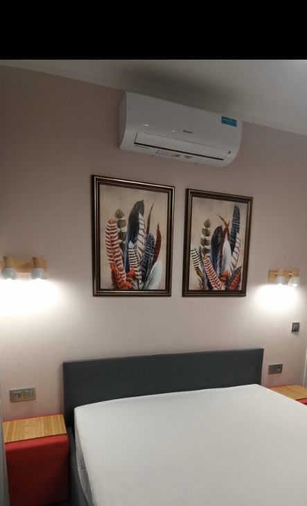 В квартире есть все необходимое для комфортной жизни: кондиционер, холодильник, посудомоечная и стиральная машины, а также телевизор. В комнате и на кухне предусмотрена современная мебель. Ванная комната оборудована душевой кабиной, что позволяет наслаждаться утренними водными процедурами.