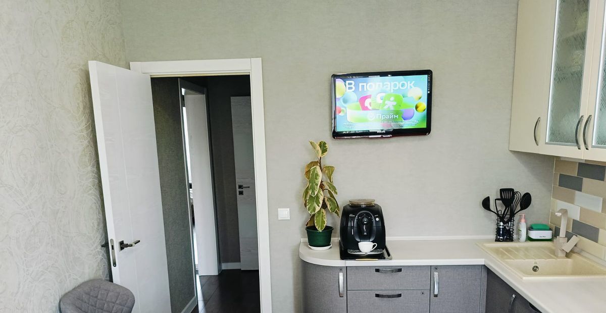 Остаётся два кондиционера, три встроенных шкафа, кухонный гарнитур с варочной поверхностью, духовым шкафом, вытяжкой и посудомоечной машиной.В квартире выполнен евро ремонт. Балкон отделан вагонкой.