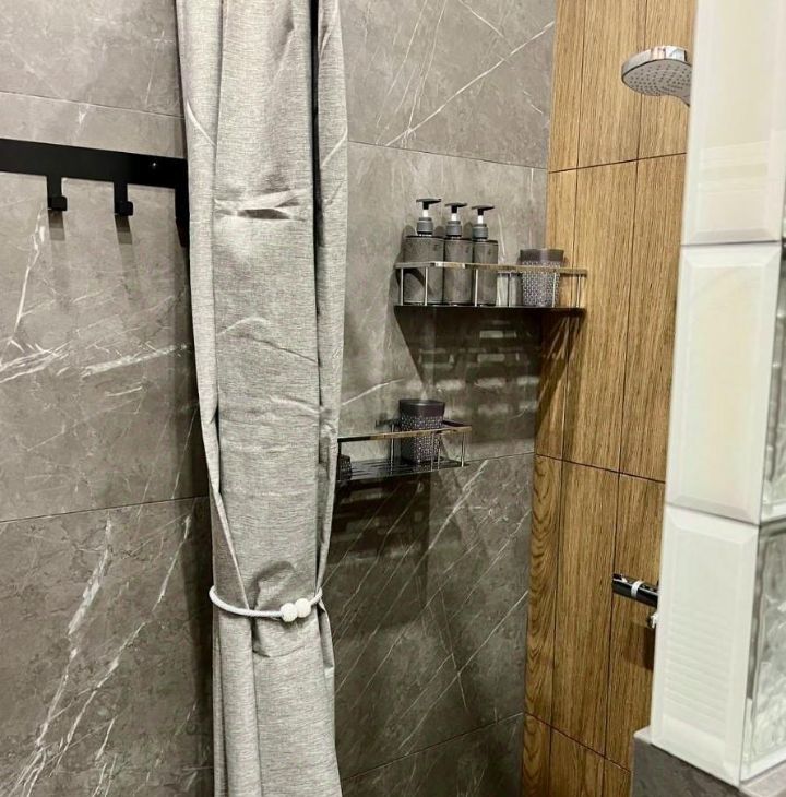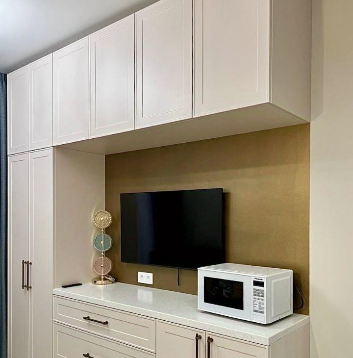 Для комфортного проживания установлена современная техника, включая кондиционеры, холодильник, посудомоечную машину, телевизор, стиральную и сушильную машины. Санузел совмещённый, оборудован душевой кабиной. Просторная гардеробная.