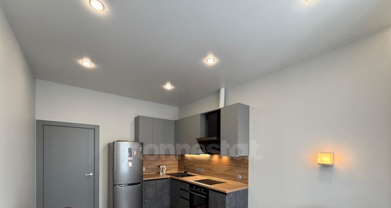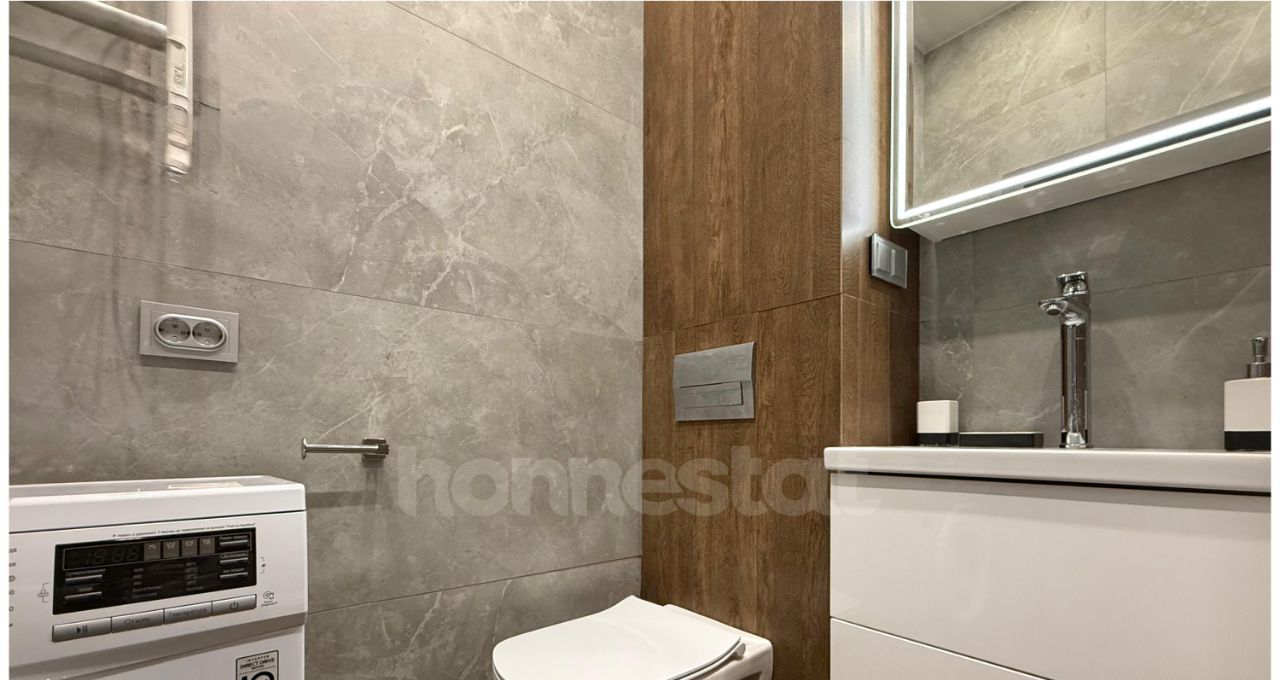 В квартире есть всё необходимое для комфортной жизни. Дизайнерский ремонт и обстановка продуманы до мелочей. В наличии мебель как на кухне, так и в комнате. Из техники предусмотрены кондиционер, холодильник, посудомоечная машина, телевизор и стиральная машина. Санузел совмещённый и оборудован ванной. Окна выходят во двор, поэтому в квартире всегда тихо и спокойно.