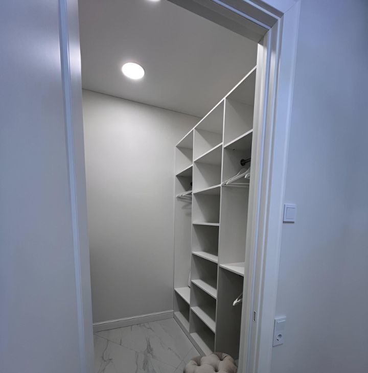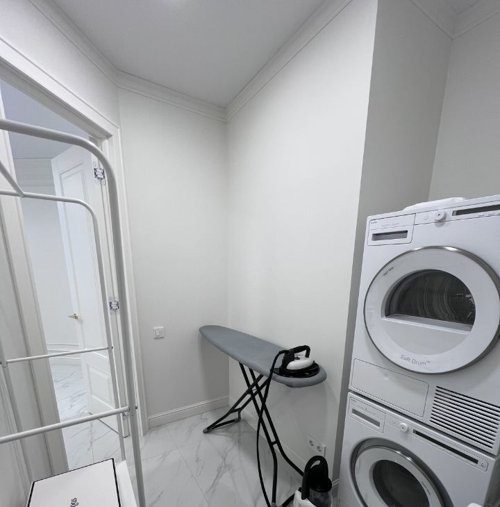 В квартире есть отдельная гардеробная комната, отдельная прачечная комната, большая спальня, санузел с душевой кабиной и просторная кухня-гостинная.