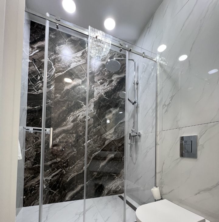 Дизайнерский ремонт выполнен с использованием премиальных и экономических материалов.