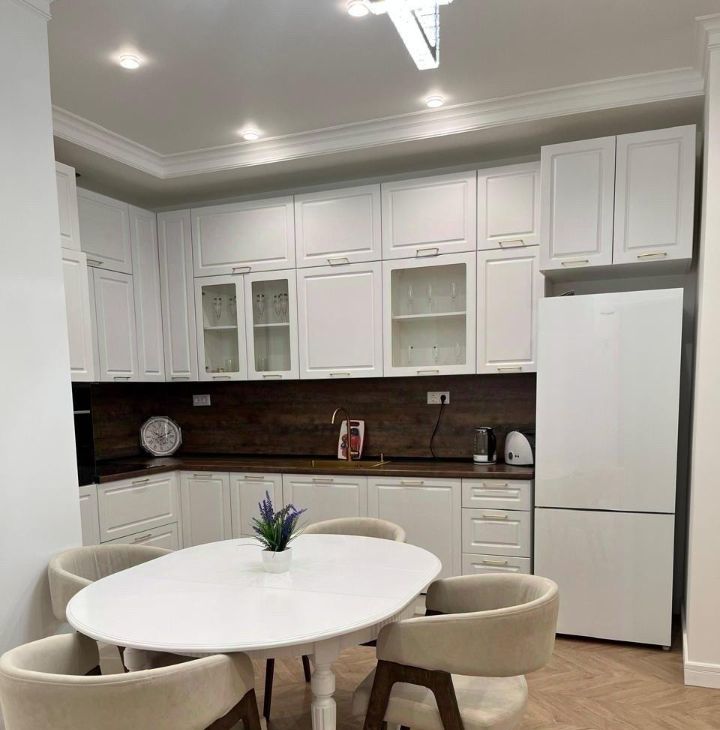 В квартире сделан качественный евроремонт, комнаты обставлены современной мебелью, в том числе на кухне, что позволит вам сразу же почувствовать себя как дома. Из техники в квартире есть всё необходимое для комфортного проживания: кондиционер, холодильник, посудомоечная машина, телевизор и стиральная машина. Два совмещённых санузла обеспечат дополнительное удобство для жильцов.