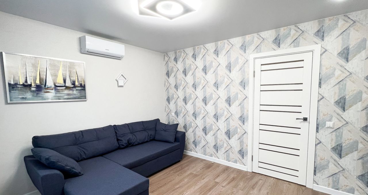 В квартире две просторные комнаты. Санузел совмещённый. На стенах обои. Ванная с полной отделкой. Лаконичность созданного интерьера позволяет вписать в него любые детали. Наличие новой, качественной мебели освобождает жильца от необходимости доставок и сборок.