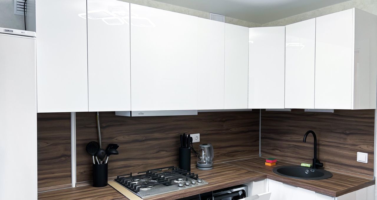 Кухне оснащённа бытовой техникой и кухонными принадлежностями.