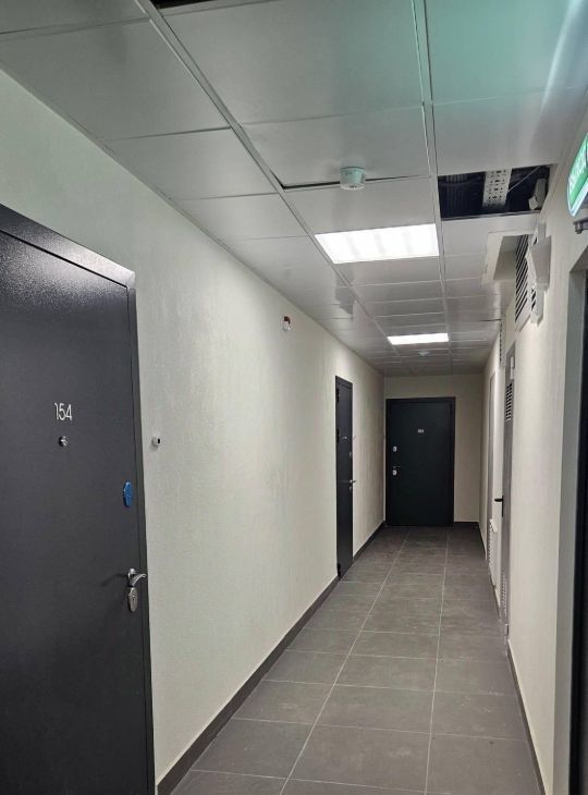Современная входная группа с пандусами, комната для консьержа и современными лифтами (пассажирский и грузовой).