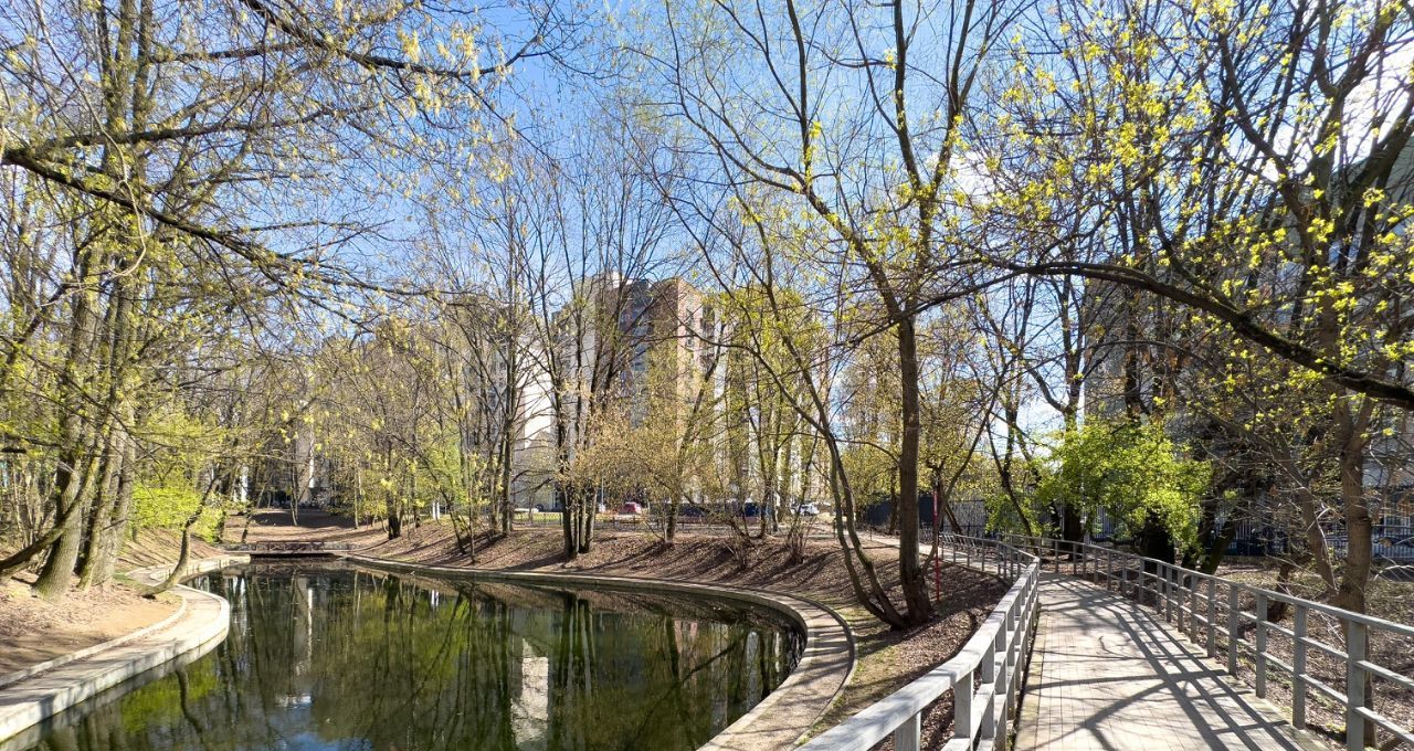 Окна выходят с одной стороны во двор, а с другой - на парковую зону с прудами.