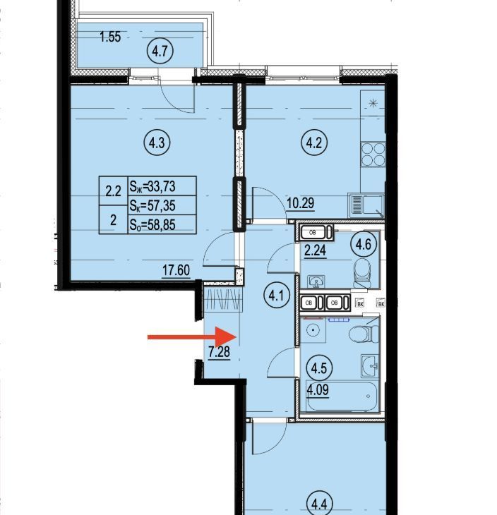 2-к кв. Москва ул. Лобачевского, 28 (58.0 м²)