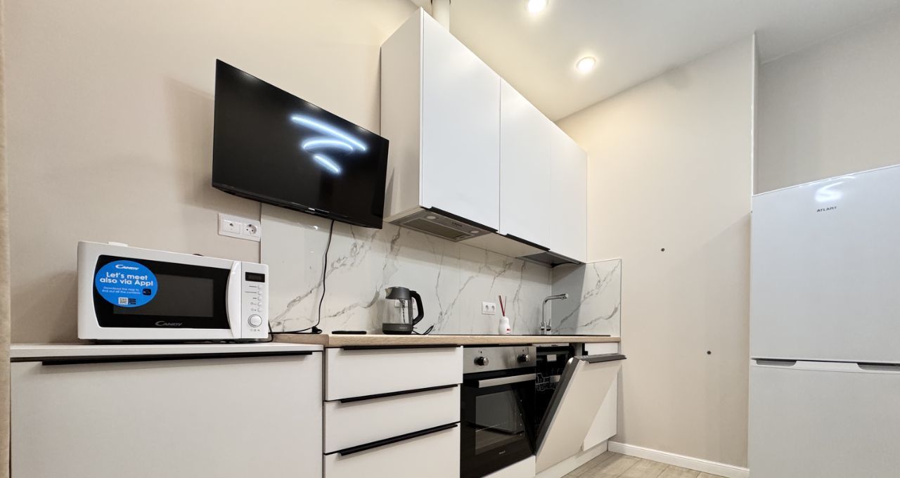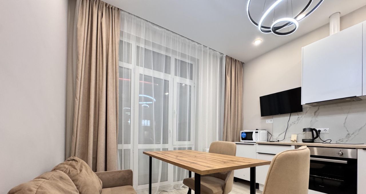 Квартира с евроремонтом, что позволяет вам сразу заселиться и наслаждаться комфортом. В комнате и на кухне есть вся необходимая мебель. Для вашего удобства в квартире установлены кондиционер, холодильник, посудомоечная и стиральная машины, а также телевизор. Ванная комната оборудована ванной. Просторная лоджия станет отличным местом для отдыха.
