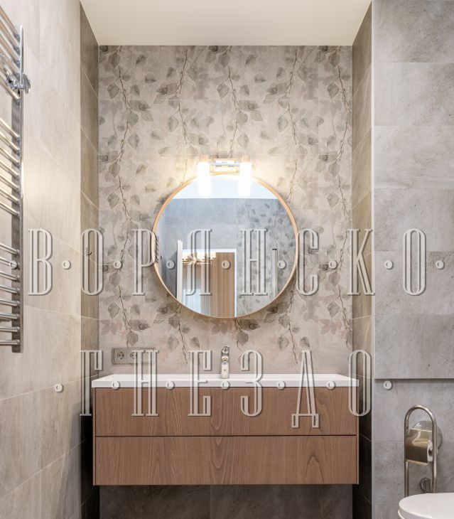 Планировкой предусмотрены: кухня-гостиная, спальня, два санузла с ванной и душевой кабиной, гардеробная комната. Застеклённая лоджия с подогревом пола. Приточно-вытяжная вентиляция с кондиционированием.