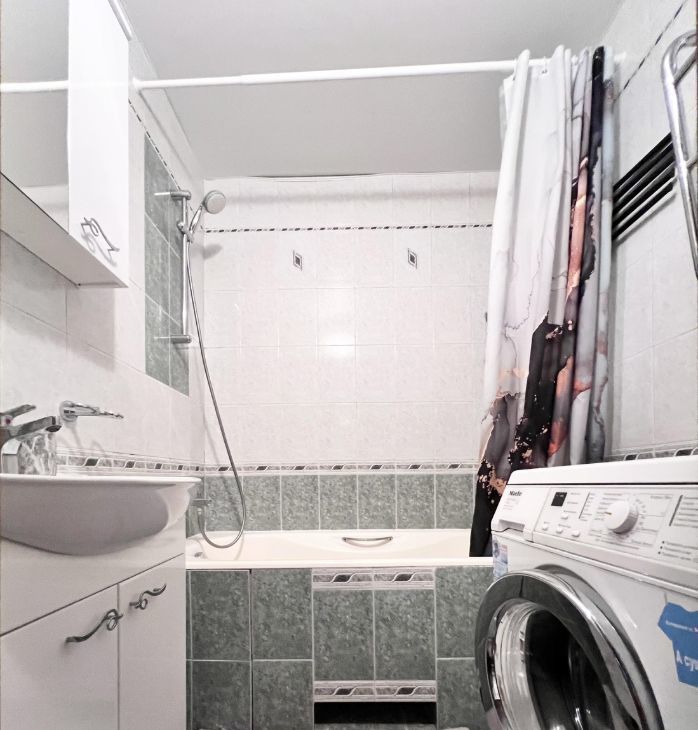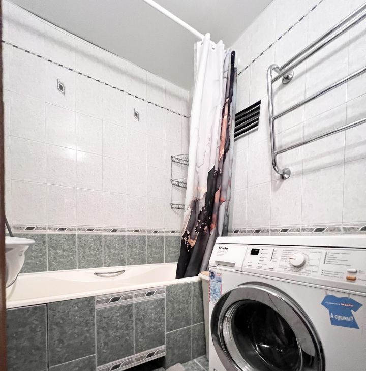 Ванная: стиральная машина Miele, проточный нагреватель воды (на случай отключения). Раздельный санузел. Прихожая: шкаф 4х створчатый, шкаф-прихожка, комод, обувница, пылесос Miele. Заст и утепл лоджия: шкаф, тумбочка, пуфик,
