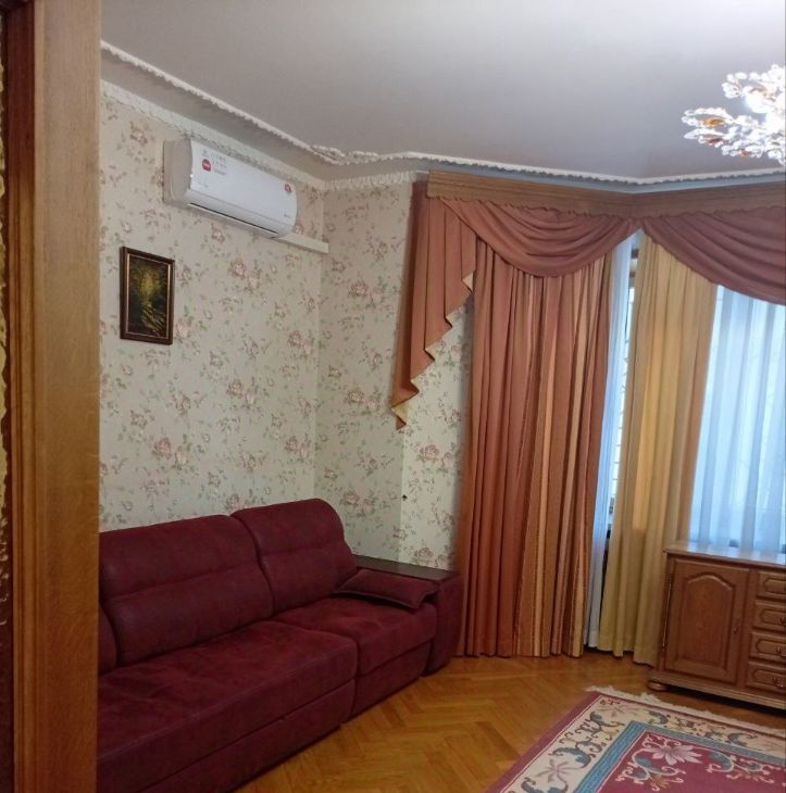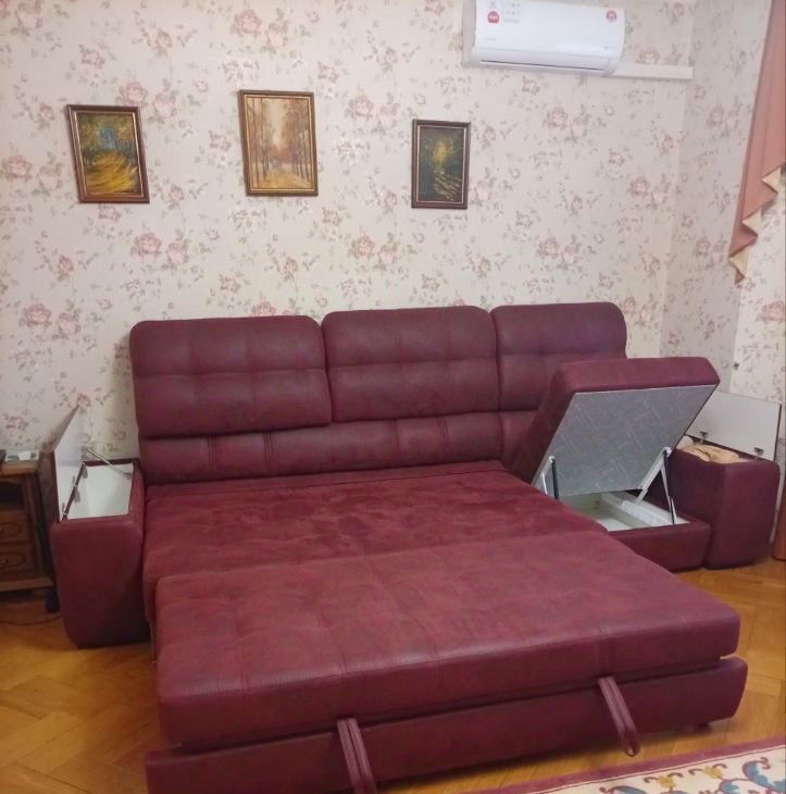 В отдельной спальне - двуспальная кровать, установлен кондиционер, в зале - огромный диван-кровать 280x200 см с кондиционером.