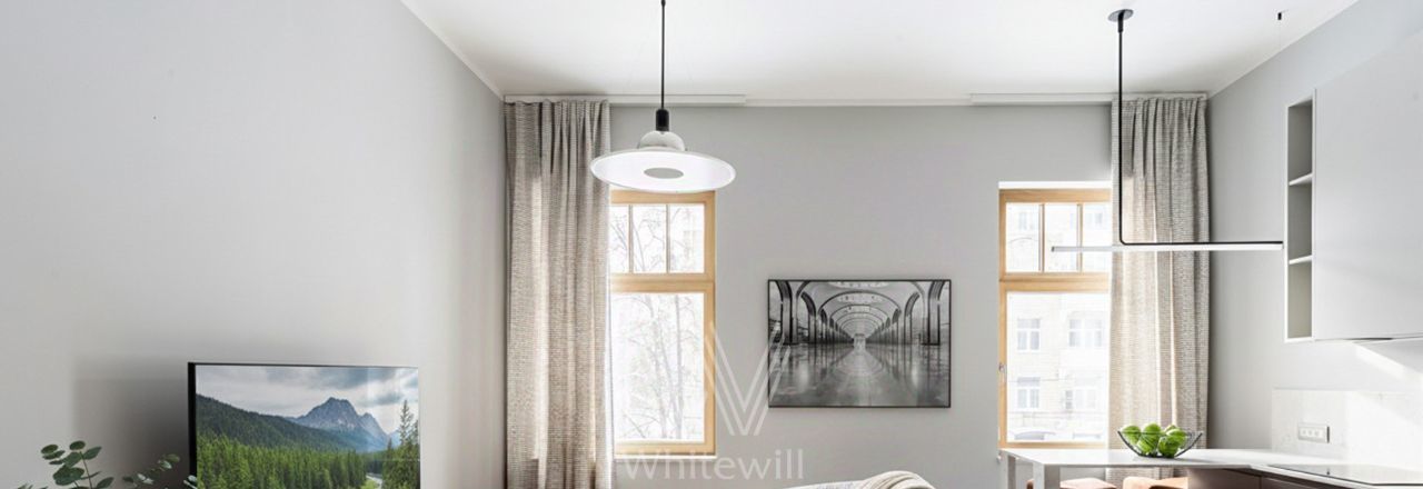 Бонус партнёрам 50%. Квартира с 1-й спальней общей площадью 65 м² на 2 этаже клубного доме Fantastic House. Выполнен дизайнерский ремонт в современном стиле в светлых тонах. Спланирована кухня-гостиная, мастер-спальня с собственным санузлом, гардеробная, гостевой санузел, постирочная, прихожая. Квартира полностью меблирована и оборудована бытовой техникой. Из окон открываются виды на улицу и в тихий двор. В стоимость входит 1 машиноместо в подземном паркинге.