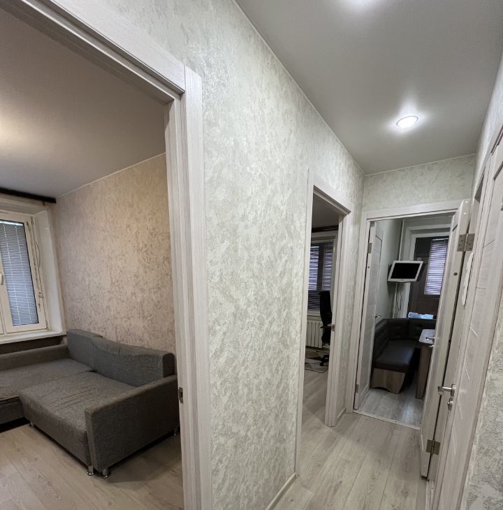 На полу ламинат, натяжные потолки. В доме и подъезде был капитальный ремонт. Во дворе свободно можно поставить автомобиль.