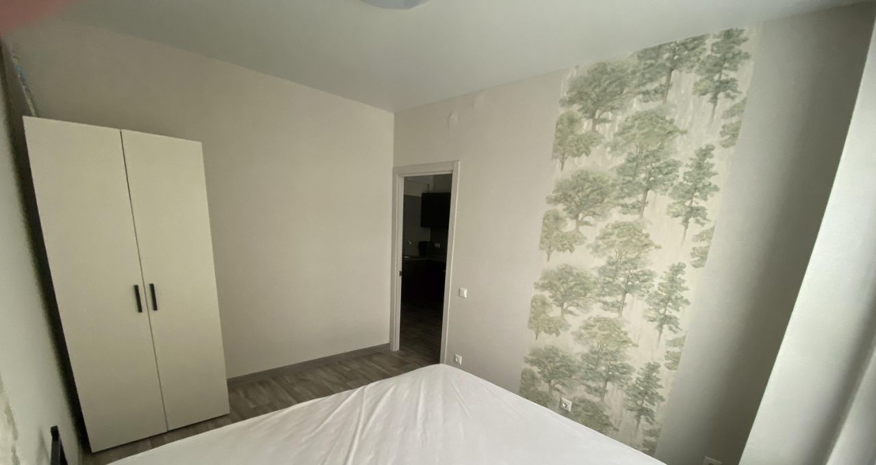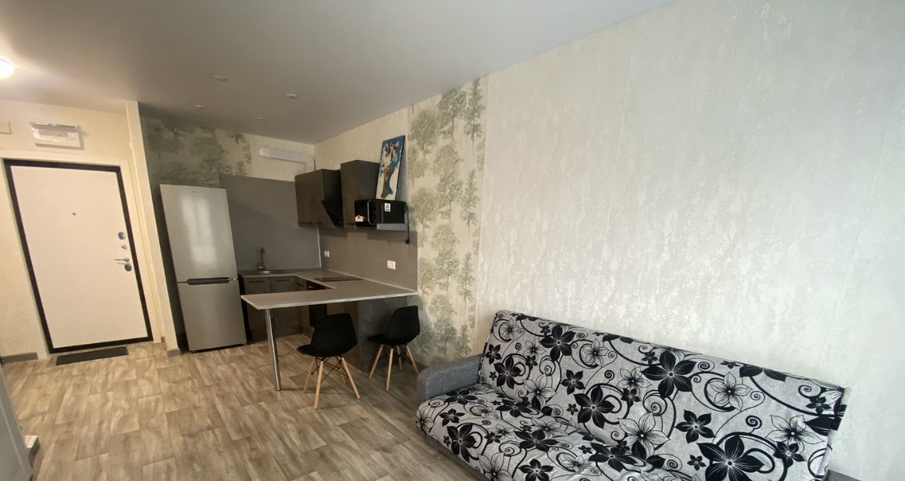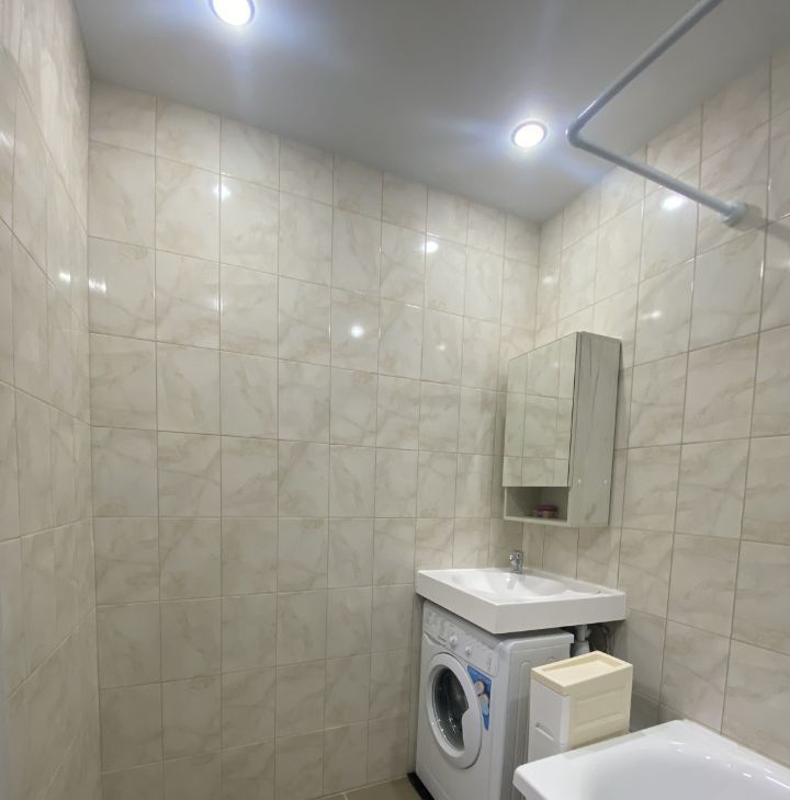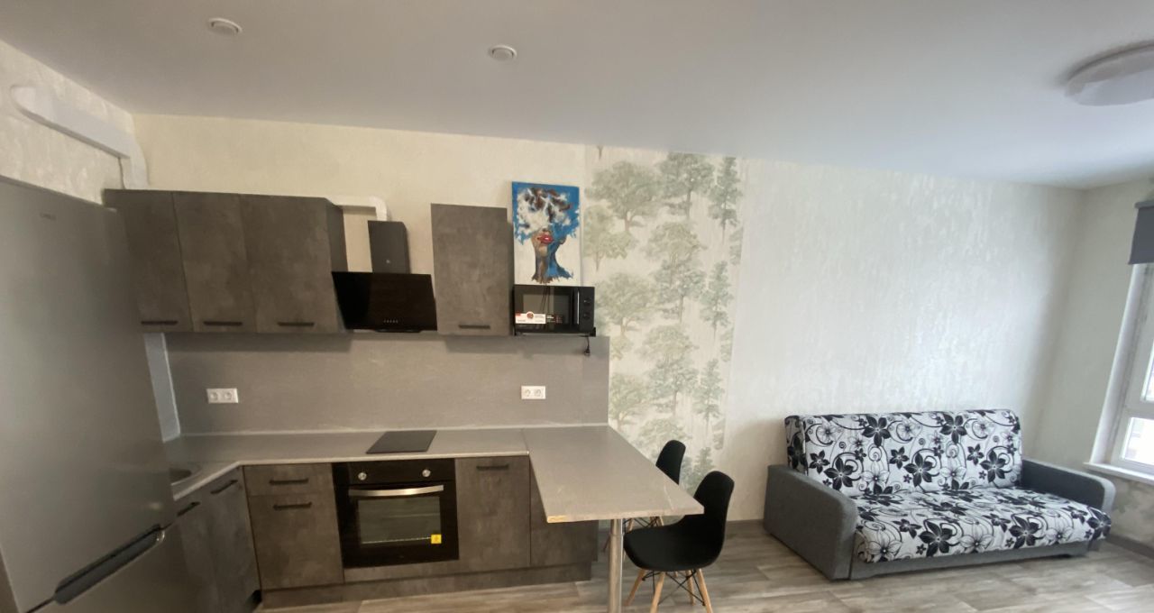 Квартира радует свежим ремонтом и современной обстановкой. Просторная кухня оборудована всей необходимой мебелью и техникой, включая холодильник. В комнате также есть необходимая мебель, что делает пространство готовым для комфортного проживания. Ванная комната оборудована ванной и стиральной машиной, а совмещенный санузел выполнен в современном стиле.
