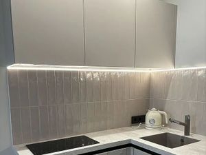 Квартира в новом доме еще ни разу не сдавалась, полностью новая мебель и современная качественная техника. На кухне есть полноразмерная посудомоечная машина с подсветкой, духовой шкаф с телескопическими направляющими, встроенная микроволновая печь, встроенный холодильник, индукционная плита. Телевизор 52 дюйма.