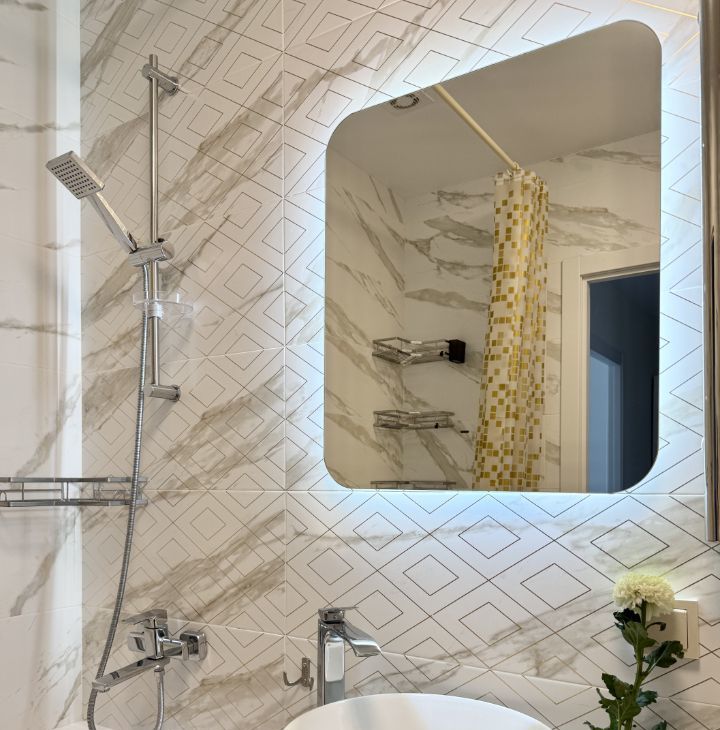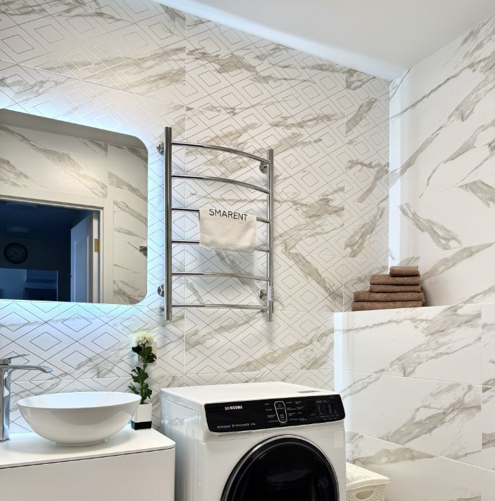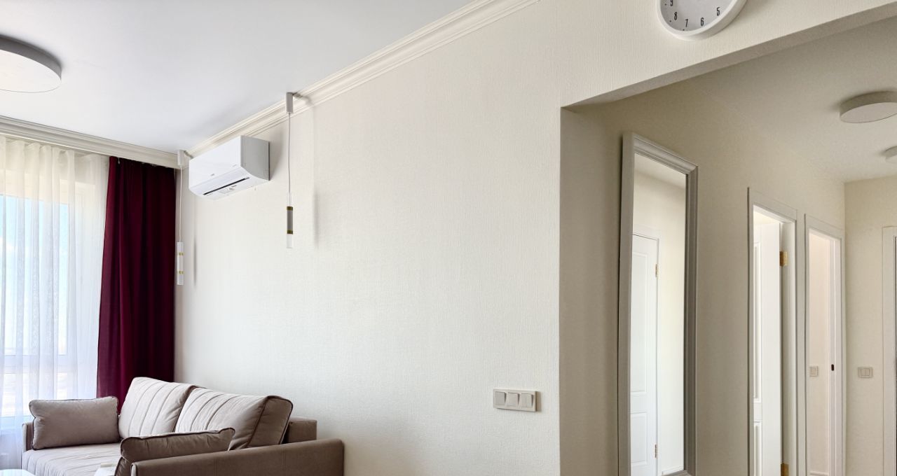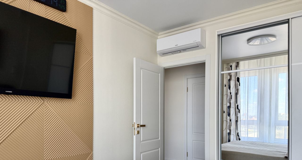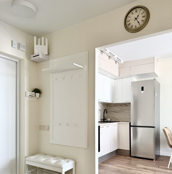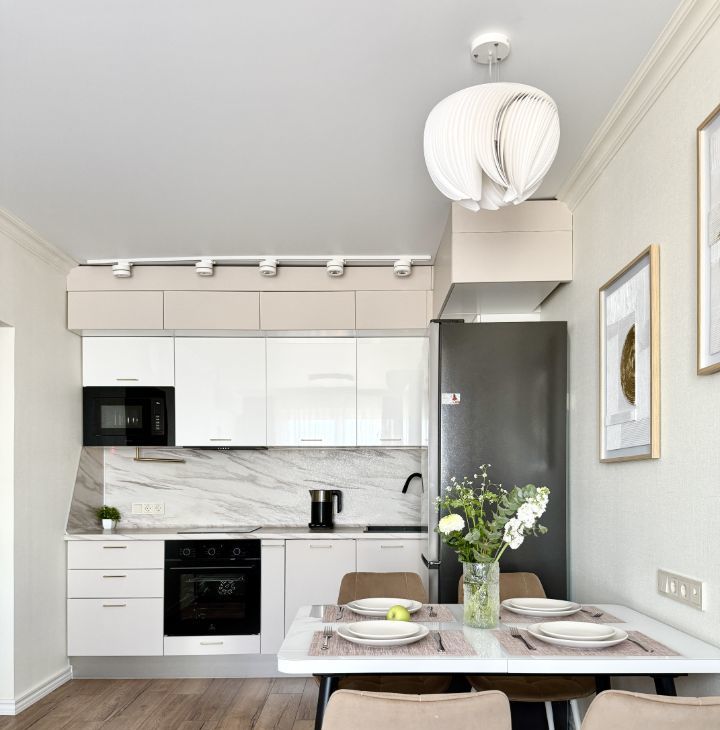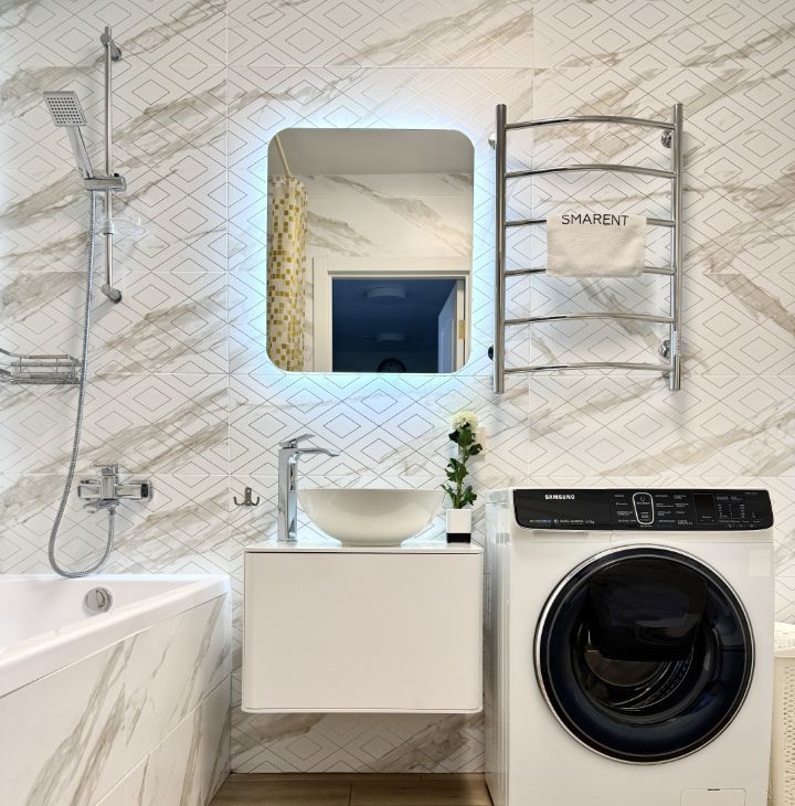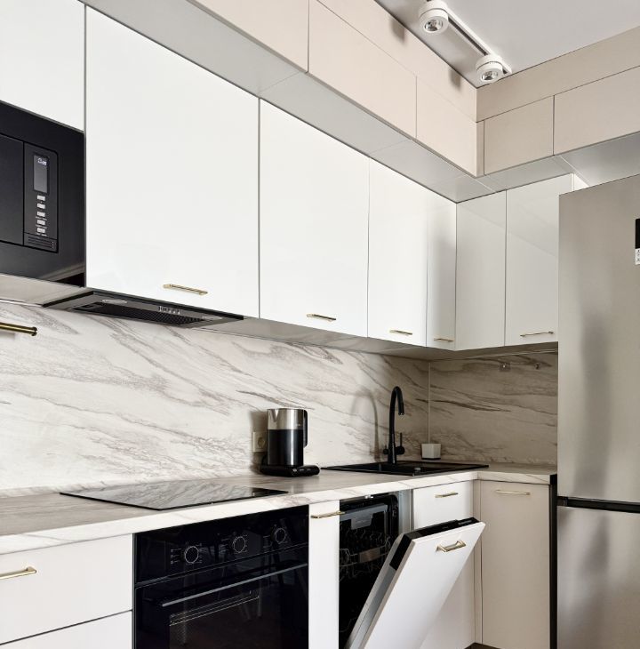 Бытовая техника: стиральная машина, посудомоечная машина, холодильник, варочная панель, вытяжка, электрический чайник, кондиционер, а так же все необходимое для комфортного проживания.