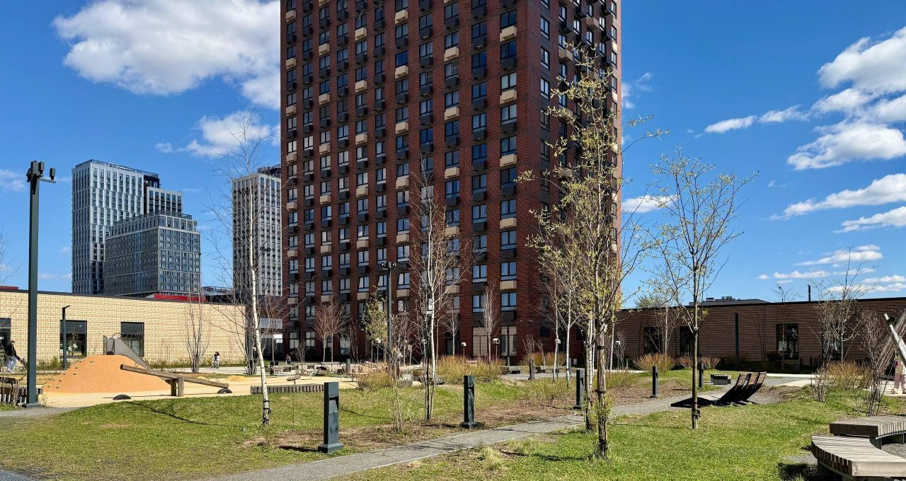 Закрытый двор-парк с концепцией "Двор без машин", где тихо и уютно, много зелени, а также благоустроенные зелёные пространства на территории района.