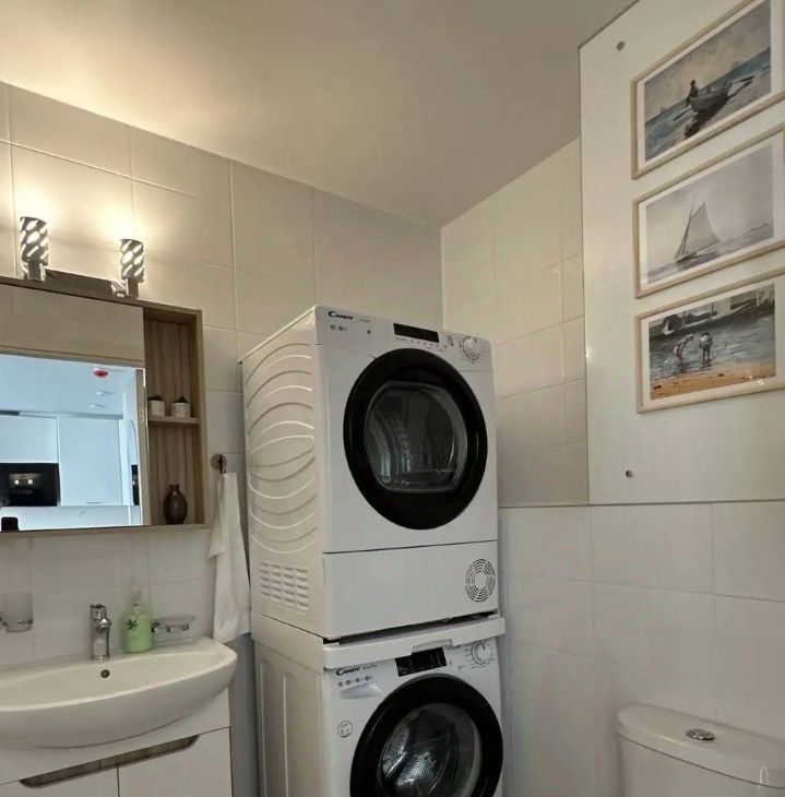 Красивый и функциональный санузел (стиральная и сушильная машина)