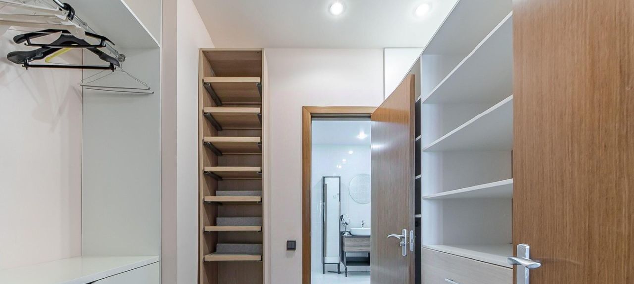 Планировка: белая светлая кухня, гостиная, балкон, просторный холл, стильная мастер - спальня с гардеробной и санузлом, гостевой санузел, хозблок.