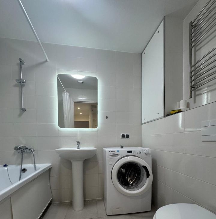 Квартира полностью готова для комфортного проживания. В комнатах есть мебель, а кухня оборудована всей необходимой техникой: кондиционер, холодильник, посудомоечная машина, телевизор и стиральная машина. В ванной комнате установлена ванна, поэтому можно расслабиться после трудового дня. Санузел совмещённый, а также есть отдельный санузел, что удобно для семейного проживания.