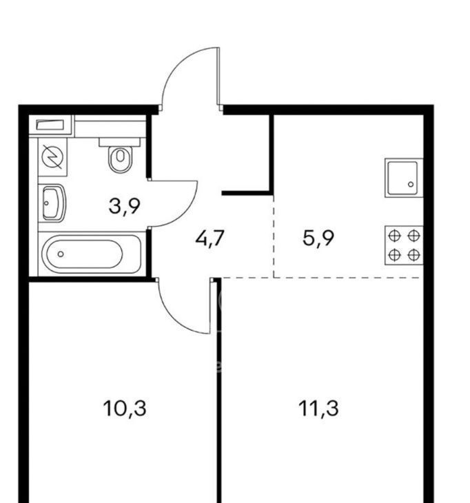 • ПРОСТОРНАЯ — Большая кухня-гостиная, отдельная уютная спальня, функциональный санузел.