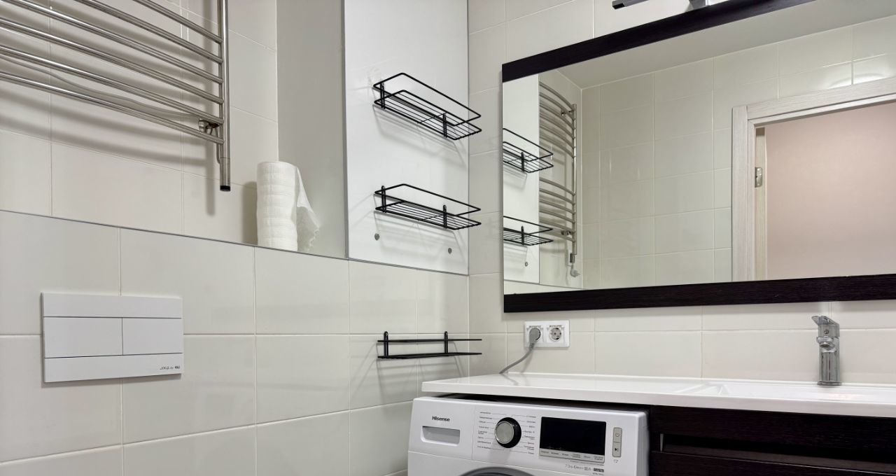 Квартира оборудована всей необходимой техникой: кондиционер (3 шт), холодильник, посудомоечная машина и стиральная машина. В комнатах и на кухне установлена современная мебель. В квартире есть совмещенный и отдельный санузел.