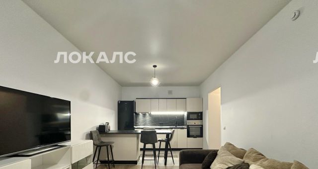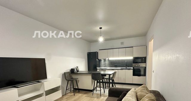 В квартире есть вся необходимая мебель, техника и посуда. В зоне кухни установлен кухонный гарнитур "Стильные кухни" с посудомоечной машиной, варочной панелью, духовым шкафом, микроволновкой, холодильником. В мойке есть измельчитель органических отходов, фильтр для воды. В зоне гостиной - диван, телевизор.