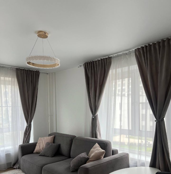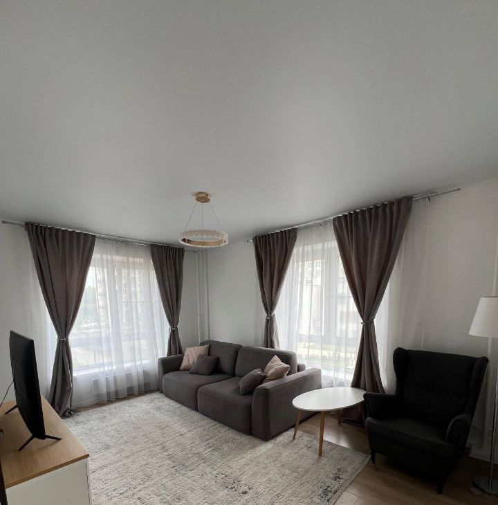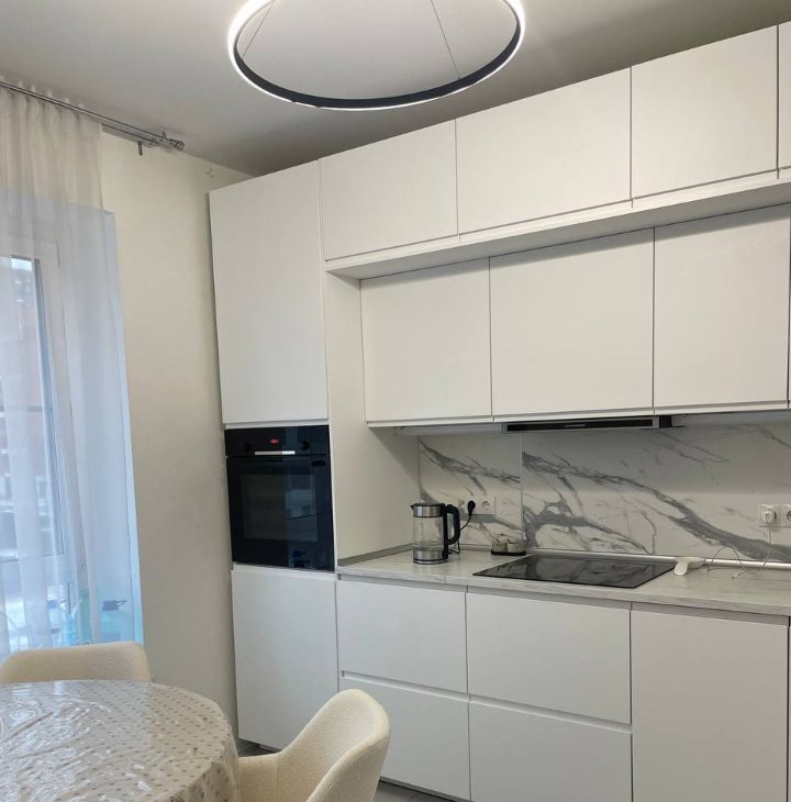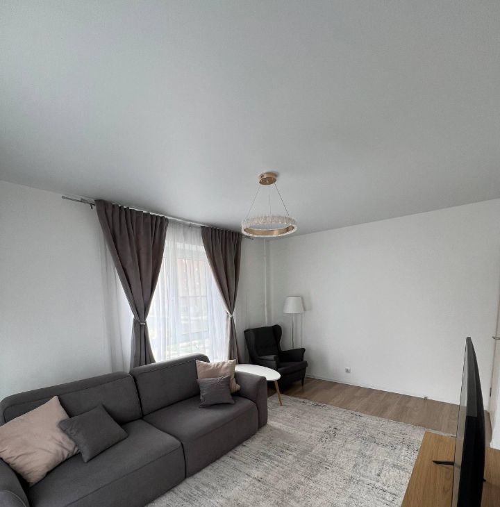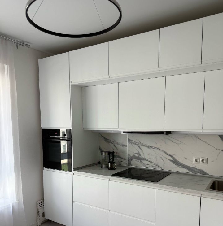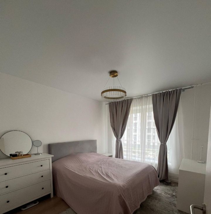 Квартира полностью меблирована и оснащена всей необходимой техникой: кухня со встроенной техникой, посудомоечная и стиральная машины, холодильник. Большие окна, много света, спокойный современный интерьер.