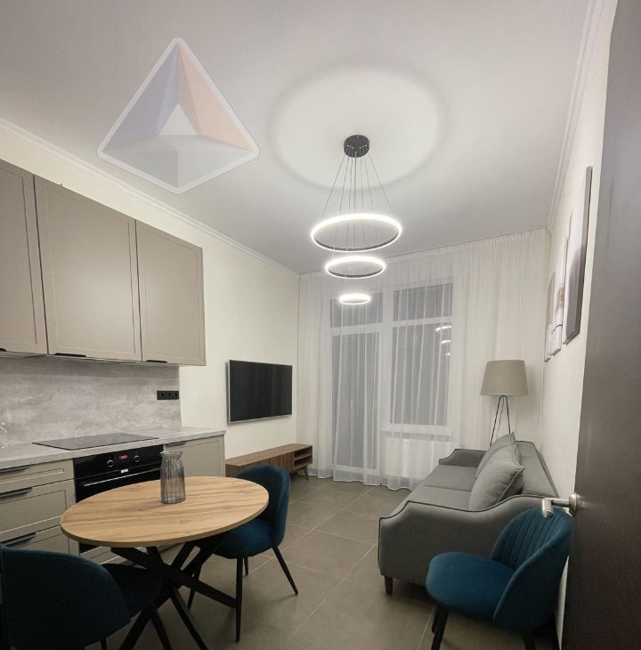 Квартира 41,5 м² на 16 этаже (25-этажный дом 2022 г.п., потолки 2,9 м): большая кухня 15 м², жилая площадь 20 м², изолированная планировка, совмещённый санузел с ванной, балкон. Качественная мебель и техника: холодильник, посудомоечная и стиральная машины, кондиционер, телевизор, интернет — заезжай и живи. 2 пассажирских + 1 грузовой лифт, мусоропровод, наземная парковка, пандус.