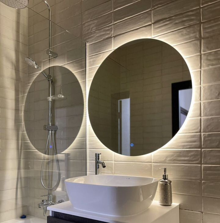 Стильная мебель, множество шкафов. Санузел: плитка до потолка, ванная и тропический душ.