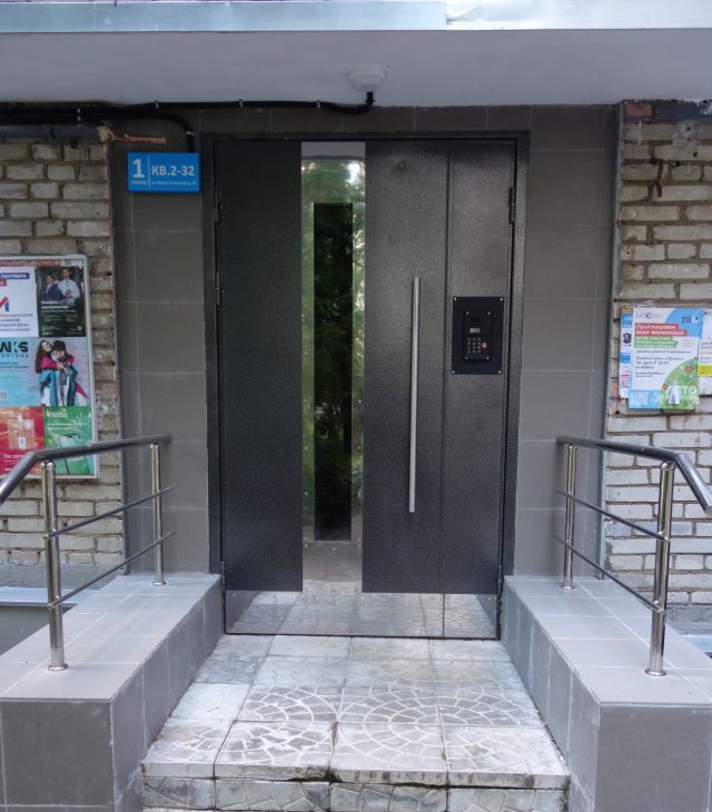 В подъезде есть лифт, мусоропровод, домофон. Два года назад в доме был капремонт, а также сделано благоустройство придомовой территории: новый асфальт, бордюры, озеленение. Двор просторный, благоустроенный. Есть детская площадка, пешеходные дорожки, много деревьев.