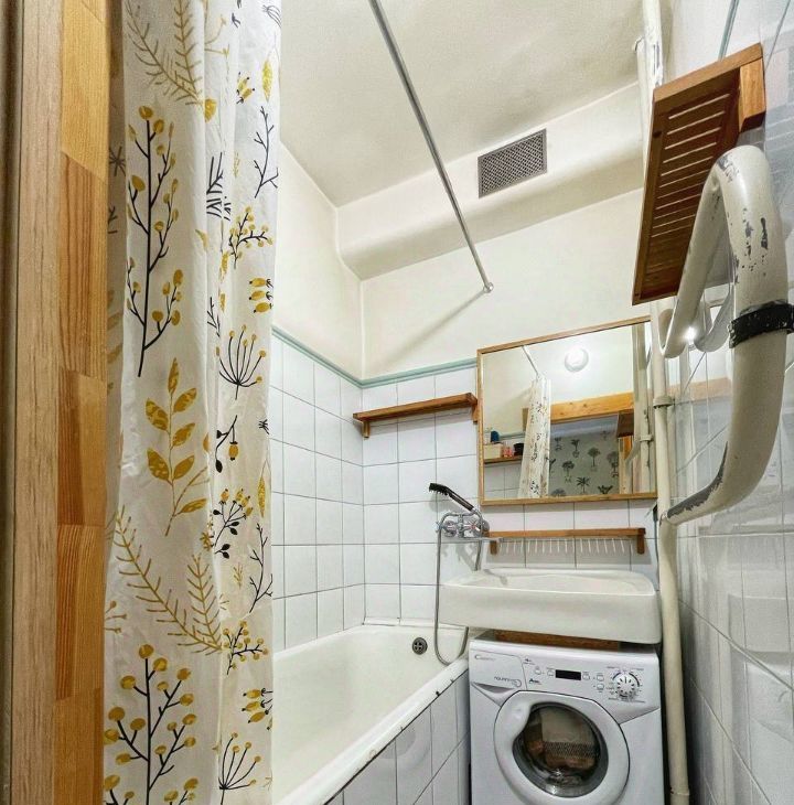 В квартире остаётся кухня, места хранения, спальные места, холодильник, стиральная машина.