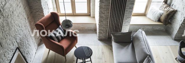Бонус партнёрам 50%. Двухуровневая квартира. Главный акцент в отделке квартиры — старинная белая кирпичная кладка с клеймами. Архитекторы вручную "открыли" кирпич, сохранив поверхность с фактурой, вставками и кладками разных эпох. В отделке использованы ценные породы дерева — дуб, сосна. Натуральный камень сочетается с гидравлической лавой и гидратированной известью.