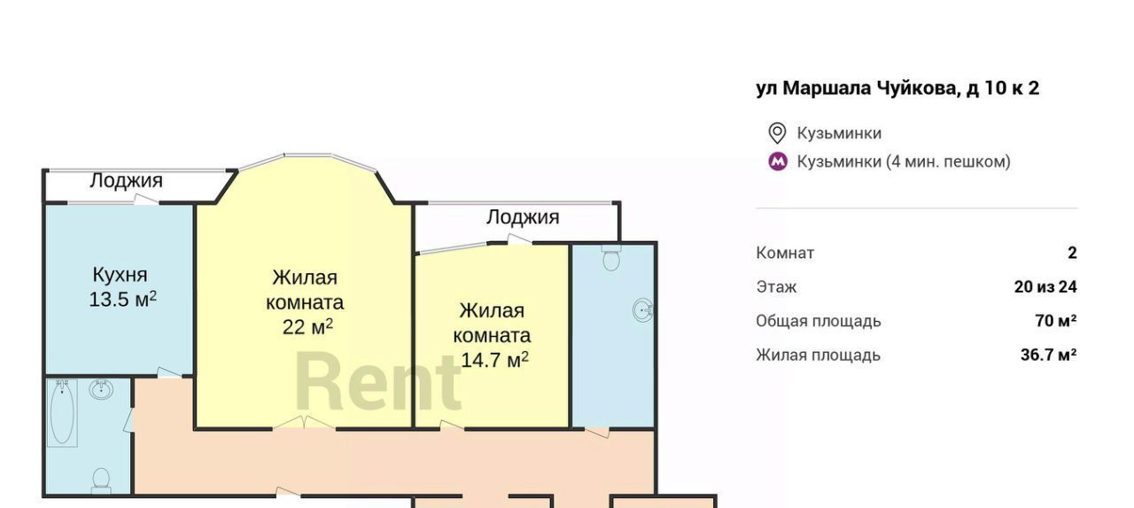 2-к кв. Москва ул. Маршала Чуйкова, 10К2 (70.0 м²)